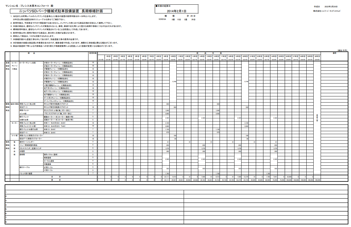 機械式駐車装置(ニッパツ) 修繕計画 (2022年2月28日時点) 機械式駐車場 2022.04.182022.04.27 [featured_image] ダウンロード Download is available until [expire_date] バージョン ダウンロード 10 ファイルサイズ 189.02 KB ファイル数 1 投稿日 2022年4月18日 最終更新日時 2022年4月27日 機械式駐車装置(ニッパツ) 修繕計画 (2022年2月28日時点) 02_機械式駐車装置(ニッパツ) 修繕計画_2022-02-28時点 機械式駐車場 長期修繕計画